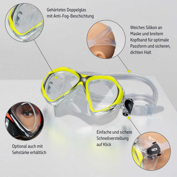 Tauchmasken mit optischen Linsen für die Nahsicht verbessern wesentlich die Sicht unter Wasser, erhöhen die Sicherheit durch ...