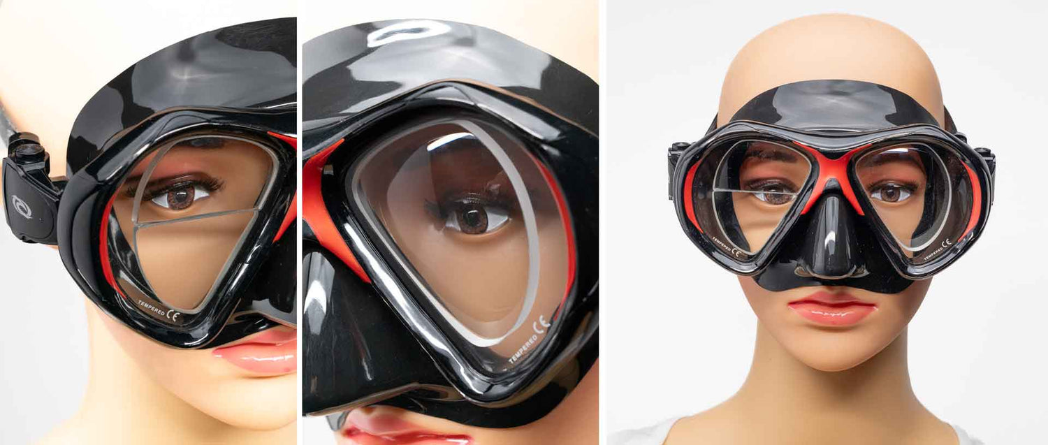 Tauchmasken mit optischen Gleitsichtgläsern bieten eine nahtlose Sehkorrektur über verschiedene Entfernungen, ...